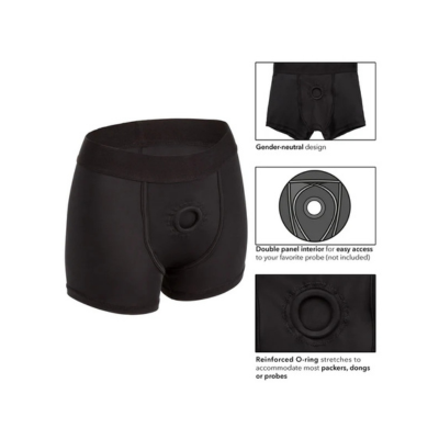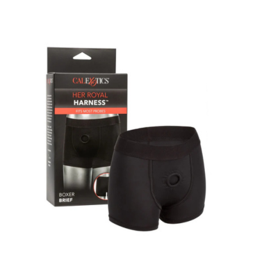 Το harness boxer Her Royal Harness της CalExotics προσφέρει άνεση, σταθερότητα και αισθησιακή εφαρμογή σε ένα σχέδιο που ισορροπεί ανάμεσα σε στήριξη και ελευθερία. Το απαλό, ελαστικό ύφασμα προσαρμόζεται στο σώμα με φυσικό τρόπο, ενώ το φαρδύ λάστιχο της μέσης εξασφαλίζει σταθερή εφαρμογή χωρίς περιορισμούς. Ο ενισχυμένος O-ring ταιριάζει εύκολα με pumps, packers, δονητές ή dildos, προσφέροντας σιγουριά και ευκολία στη χρήση.